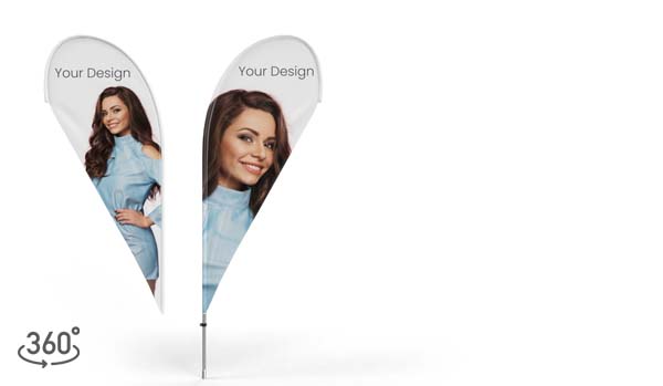 Nabízíme také oboustranné reklamní vlajky – s odděleným potiskem na každé straně. Jsou dostupné jak s tyčí Standard, tak Premium. V tomto případě tiskneme vlajku na materiál nazývaný Blackback PRO, který zajišťuje, že potisk neproráží na druhou stranu. Díky tomu můžeme sešít dva nezávislé potisky bez obav, že by se jedna strana projevovala na druhé. Je třeba počítat s tím, že oboustranná reklamní vlajka je těžší, a proto vyžaduje těžší podstavec a nejlépe se hodí tam, kde není vítr nebo do interiérů.
