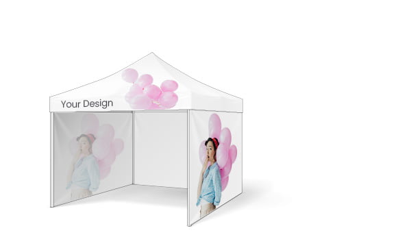 Bez ohledu na to, zda zvolíte stan se stěnami nebo bez nich a v jaké velikosti, vaši grafiku vytiskneme na vnější straně, jak na střeše, tak na stěnách. Obchodní stan s potiskem například s vaším logem bude viditelný z dálky, což pomůže zvýšit povědomí o vaší firmě a zákazníci vás snadno najdou.